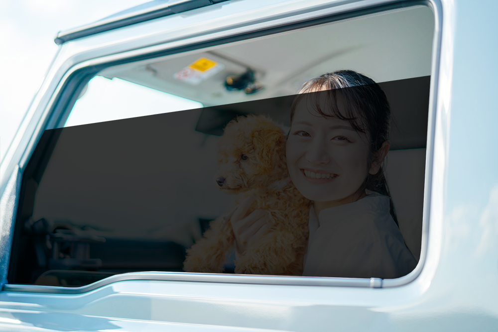 外から車内を見にくくし室内のプライバシー保護に適しています。室内からの視界はクリアなままなので安心です。印象も変わりドレスアップにも効果的。